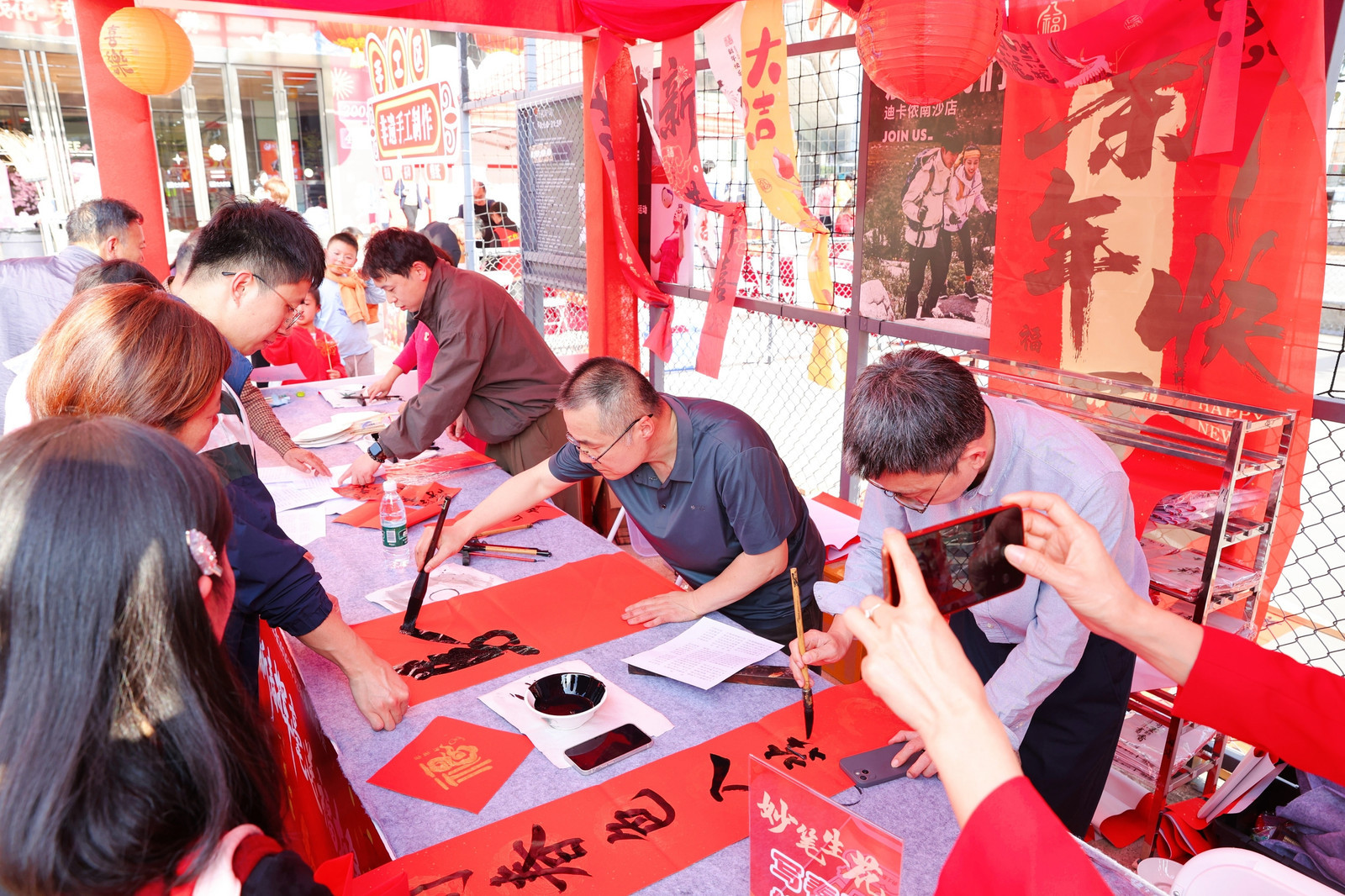 南沙区总工会特邀区书法家协会老师到场,在春联摊位为职工现场书写春联和“福”字,作品免费赠予参与职工。“我们司机一年到头在路上跑,最大的心愿就是平安。今天能拿到手写的春联,感觉特别有仪式感,年味一下子就浓了。”来自货拉拉平台的驾驶员李师傅精心挑选了一副“平安是福”对联,开心地说道。