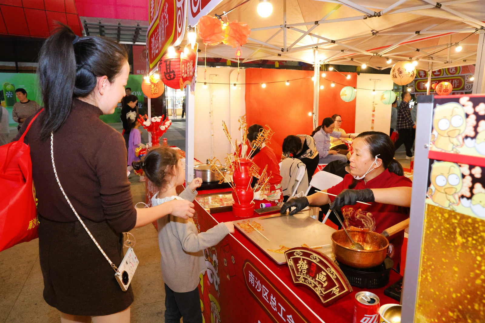 现场的美食摊位同样受欢迎,糖画师傅现场制作生肖造型糖画,糖葫芦摊位也勾起了不少人的童年回忆,让传统年俗更具烟火气。